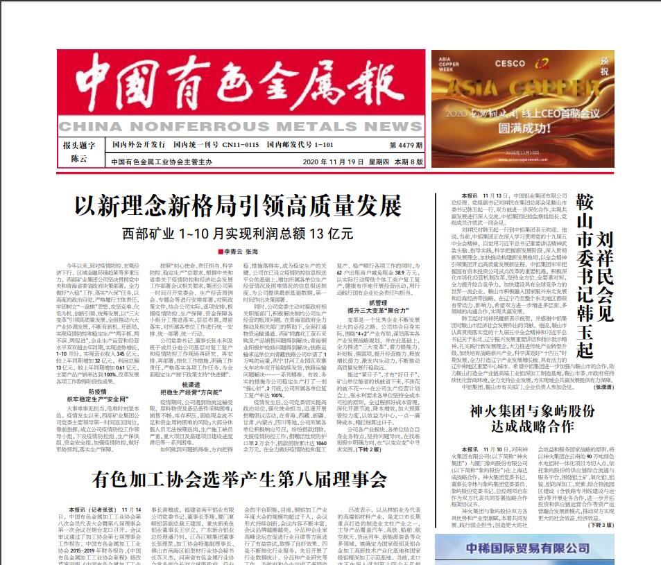【中国有色金属报】第4479期头版头条