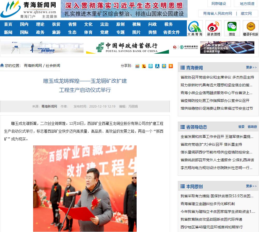仪式上,张永利向长期以来关心支持西部矿业发展、支持改扩建工程建设的藏青两省区各级党委政府、各大金融机构,艰苦奋斗、发扬“缺氧不缺精神、海拔高斗志更高”精神的各施工单位以及为改扩建工程付出艰辛努力的全体玉龙人表示衷心感谢。