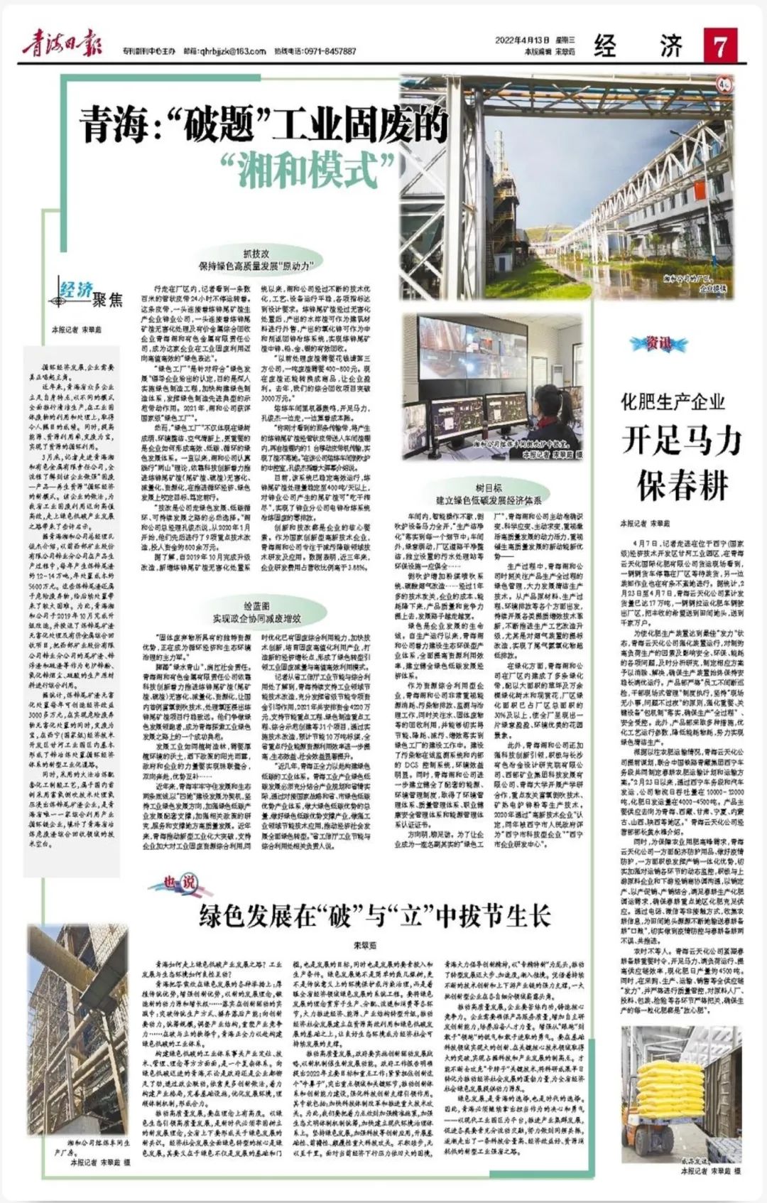 近年来,西部矿业集团坚定不移走“资源节约、低碳消耗、绿色发展、循环利用”的绿色发展之路,全面推行清洁生产,依靠科技创新在推进循环经济、绿色发展上咬定目标、笃定前行。所属湘和公司推进炼锌尾矿渣无害化、减量化、资源化,经过不断技术优化,实现了冶炼渣的“吃干榨尽”,填补了青海省冶炼危废渣综合回收领域的技术空白。日前,《青海日报》相继推出“青海炼锌尾矿渣资源 综合利用水平显著提升”“绿色低碳,青海工业产业高质量发展之路”等稿件,报道深度报道湘和公司推动绿色发展,完成工业废渣到工业品转换的具体举措。4月13日,《青海日报》经济专栏以“青海:‘破题’工业固废的湘和模式”为题,深度报道湘和公司推动绿色低碳循环发展生动实践,引发较大反响。