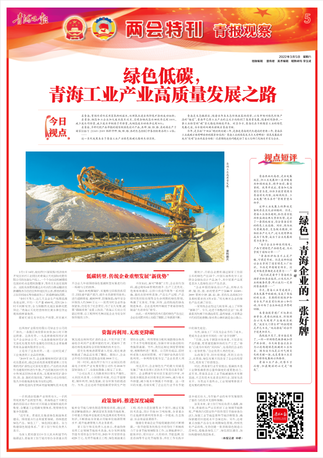 3►“绿色低碳, 青海工业产业高质量发展之路”