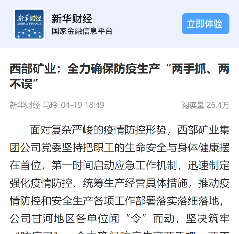 面对复杂严峻的疫情防控形势,西部矿业集团公司党委坚持把职工的生命安全与身体健康摆在首位,第一时间启动应急工作机制,迅速制定强化疫情防控、统筹生产经营具体措施,推动疫情防控和安全生产各项工作部署落实落细落地,公司甘河地区各单位闻“令”而动,坚决筑牢“防疫网”,全力确保防疫生产两手抓、两不误。