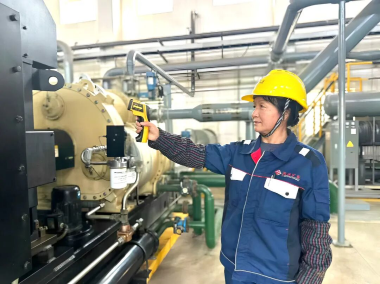 青海铜业公司动力中心空压机旁,马海兰严格监控压力、油温等参数,细致记录运行日志。国庆假期期间,她坚守岗位,负责提前排查管路密封、冷却系统等隐患并备足备件,以专业尽责筑牢节日生产的动力防线。