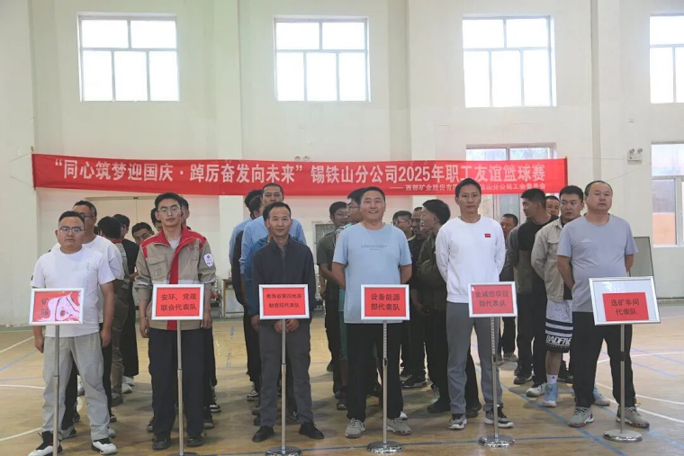 锡铁山分公司举办职工友谊篮球赛。运动场上运动员们精神饱满,斗志昂扬,比分交替上升,场下职工们呐喊助威声此起彼伏,为每一次精彩进球欢呼喝彩,现场气氛热烈非凡。