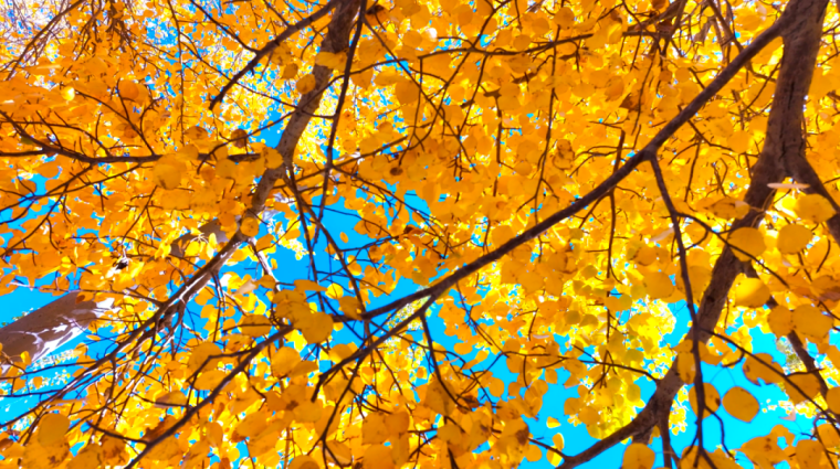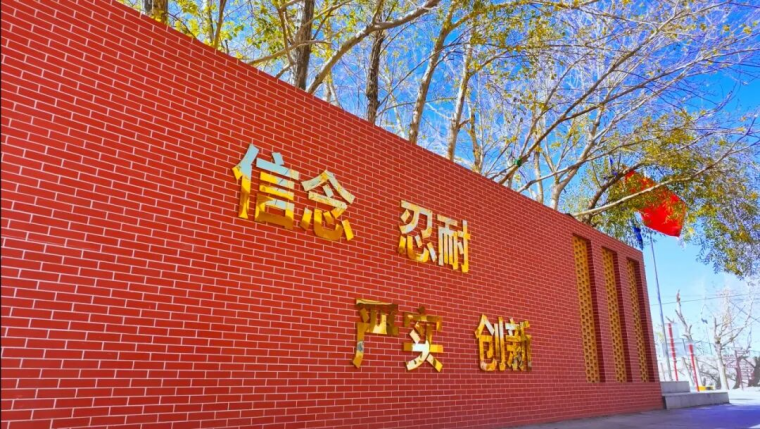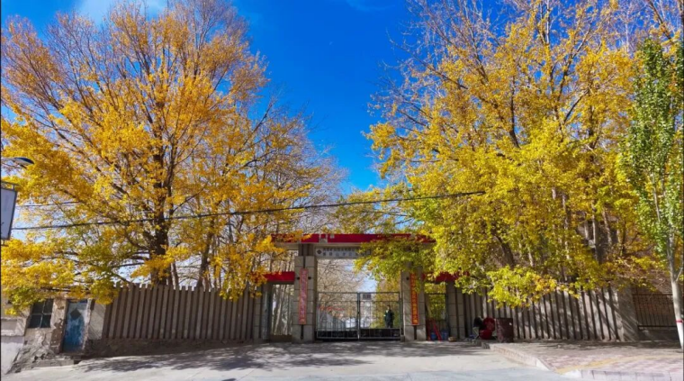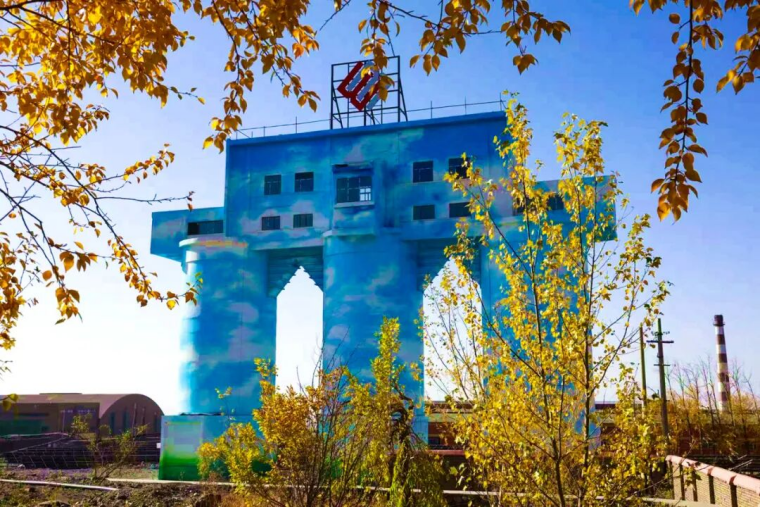 远远望去,蓝天白云下,公园里参天的白杨金漆半染,片片落叶在秋风中飞舞,温暖的阳光照耀在每一片秋叶上,泛着的金光中布满“种下一棵树、建起一座楼、修出一条路、点亮一盏灯”的矿业报国故事。