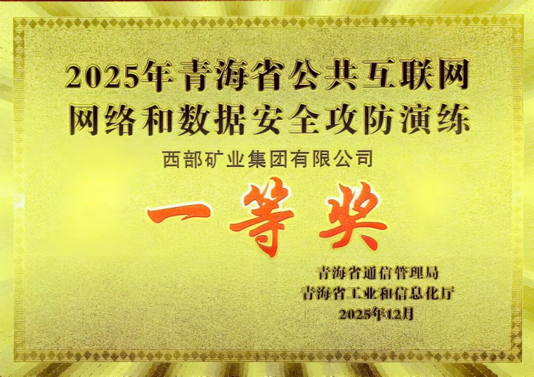 12月22日,在青海省通信管理局、青海省工业和信息化厅联合主办的2025年青海省公共互联网网络和数据安全攻防演练中,集团公司代表队凭借扎实表现斩获一等奖。