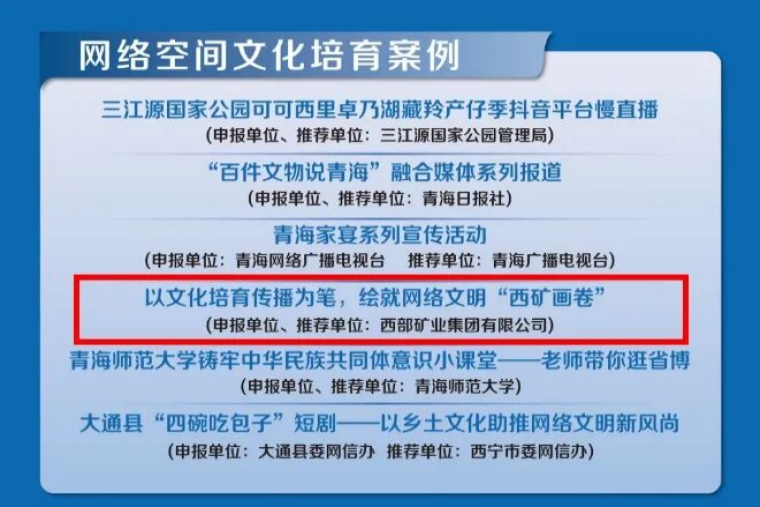 西矿集团入选全省网络精神文明建设优秀案例