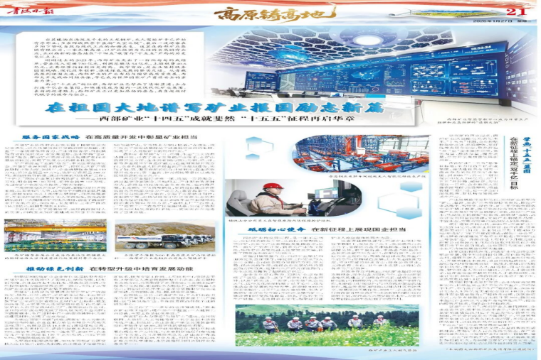 在祖国大地谱写矿业报国励志新篇——《青海日报》“头版+整版”报道西矿集团“十四五”成就斐然“十五五”征程再启华章