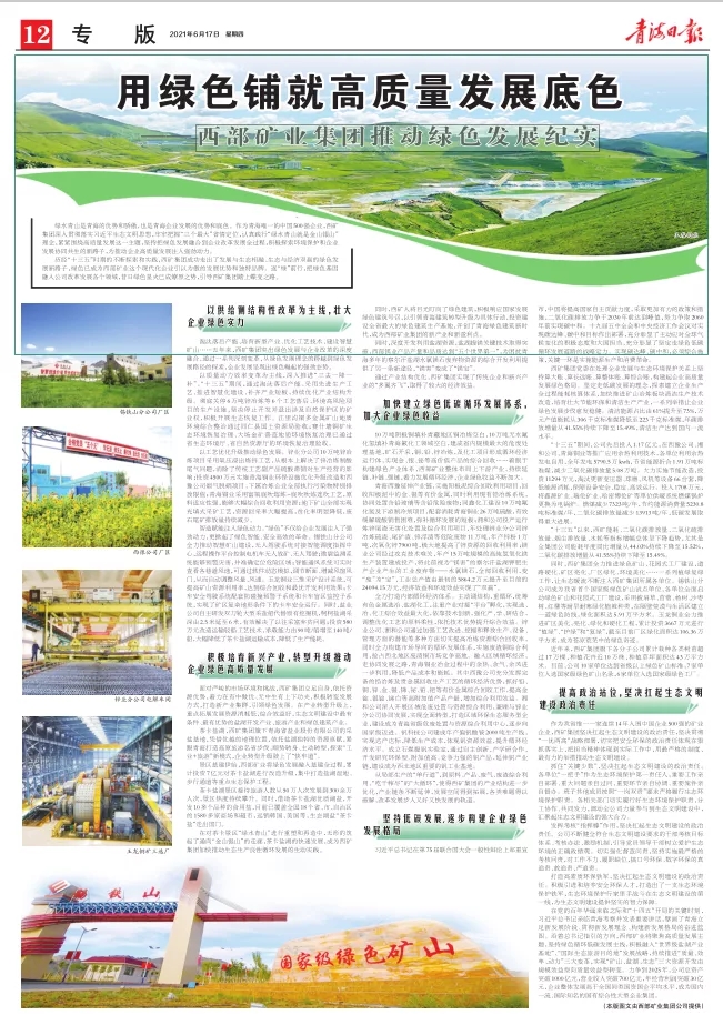 今日,《青海日报》以“用绿色铺就高质量发展底色——西部矿业集团推动绿色发展纪实”为题,整版报道公司近年来绿色发展成就。