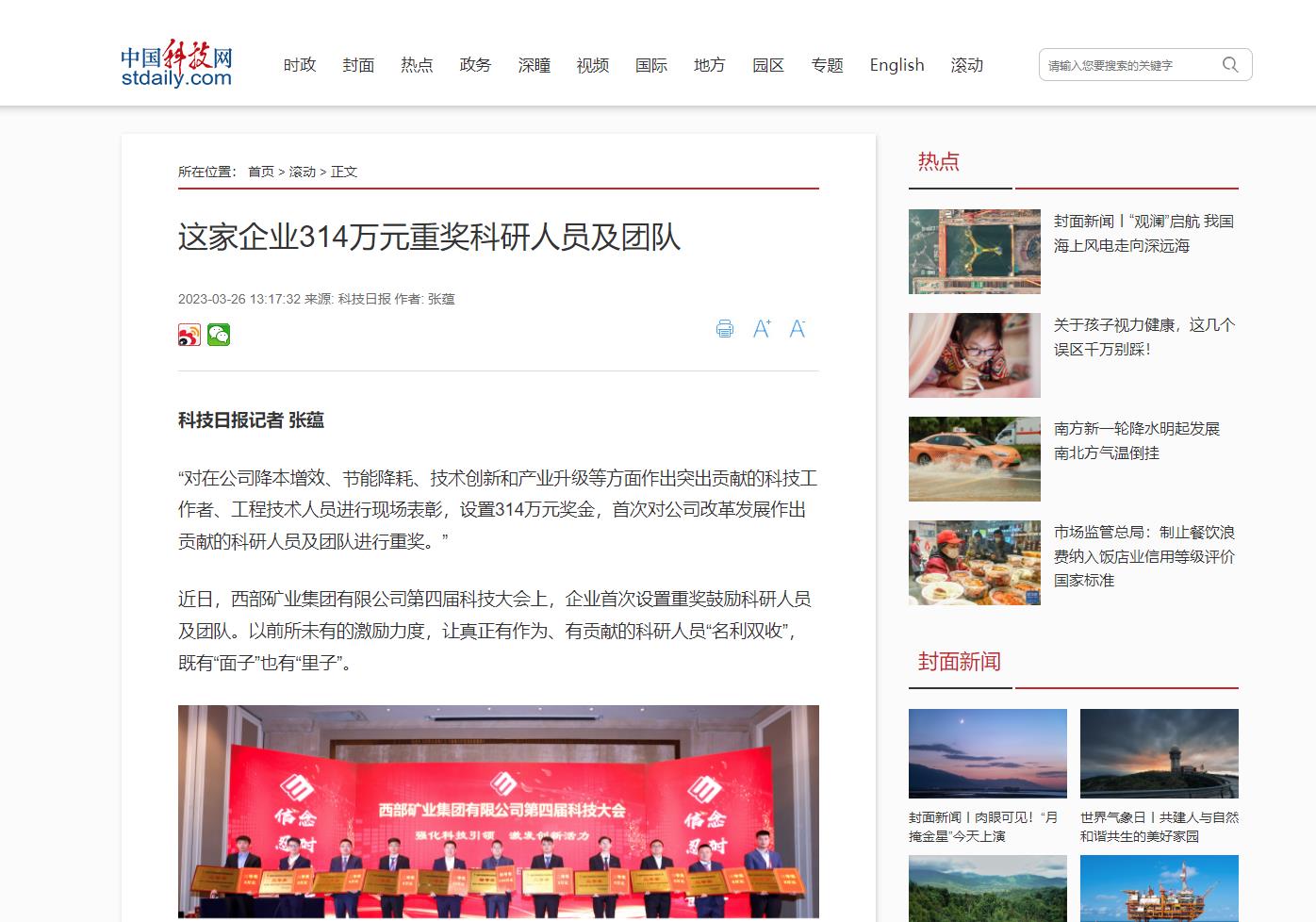 近日,西部矿业集团有限公司第四届科技大会上,企业首次设置重奖鼓励科研人员及团队。以前所未有的激励力度,让真正有作为、有贡献的科研人员“名利双收”,既有“面子”也有“里子”。