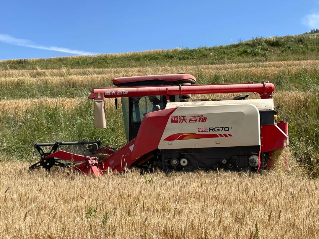 目前,大通县小龙院村丰邦农机服务专业合作社,建有400平方米农机具库,购置中型履带收割机、大型四轮拖拉机、中型四轮拖拉机、打草机及配套犁、铧、播种器具等设备;民和县梨锦农机服务专业合作社,购置拖拉机、旋耕机、履带式青贮收获机、方草打捆机等农业设备。秋收时分,农业机械化服务合作社的大型收割机和四轮拖拉机在田间来回穿梭,机械的轰鸣声萦绕在田间地头,在一排排整齐的梯田中,听着村民爽朗的笑声,印着村民丰收喜悦的笑脸。