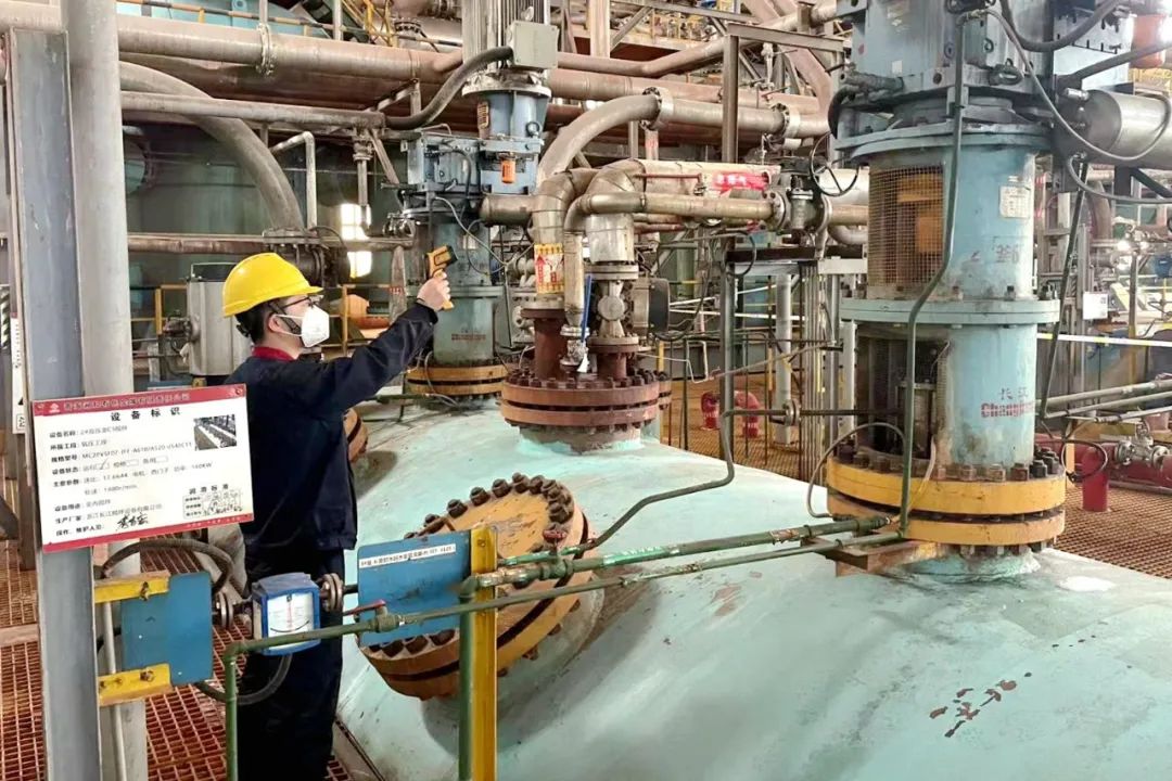 林立的罐体有序排列,长长的管廊延伸开去,西矿同鑫化工设备检修热火朝天,严寒冬日人员却满身热汗,全力为安全生产聚势赋能。锡铁山分公司点检员按照点检路线,穿梭在生产设备之间,“望闻问切”,倾听着设备运行“声音”,对照标准发现并排除设备异常和隐患,全力确保各类生产设备的高效、平稳运行……