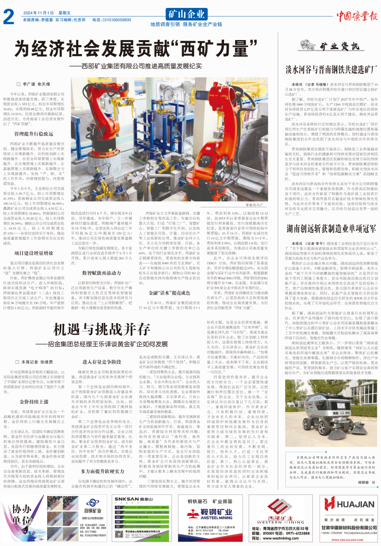 【中国矿业报】为经济社会发展贡献“西矿力量”——西部矿业集团有限公司推进高质量发展纪实