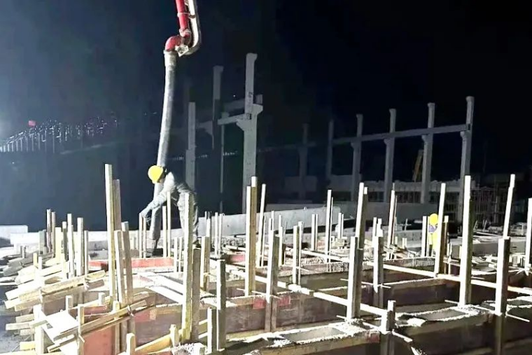 大体积混凝土浇筑的情景是严把工程质量的缩影。