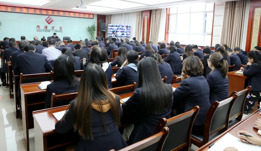 党委工作处讯(张 海 李广建) 为深入推进党史学习教育,引导党员干部学史明理、学史增信、学史崇德、学史力行,做到学党史、悟思想、办实事、开新局,为公司实现高质量发展不懈奋斗,3月30日,西矿集团举行首场党史教育宣讲会,集团公司党委书记、董事长张永利以“坚定理想信念,担当时代重任”为题,为全体党员领导干部上了一堂精彩生动的党课。集团、股份公司领导班子成员,各处(部)主任及以上人员、党员代表现场参会,各分子公司视频参会。