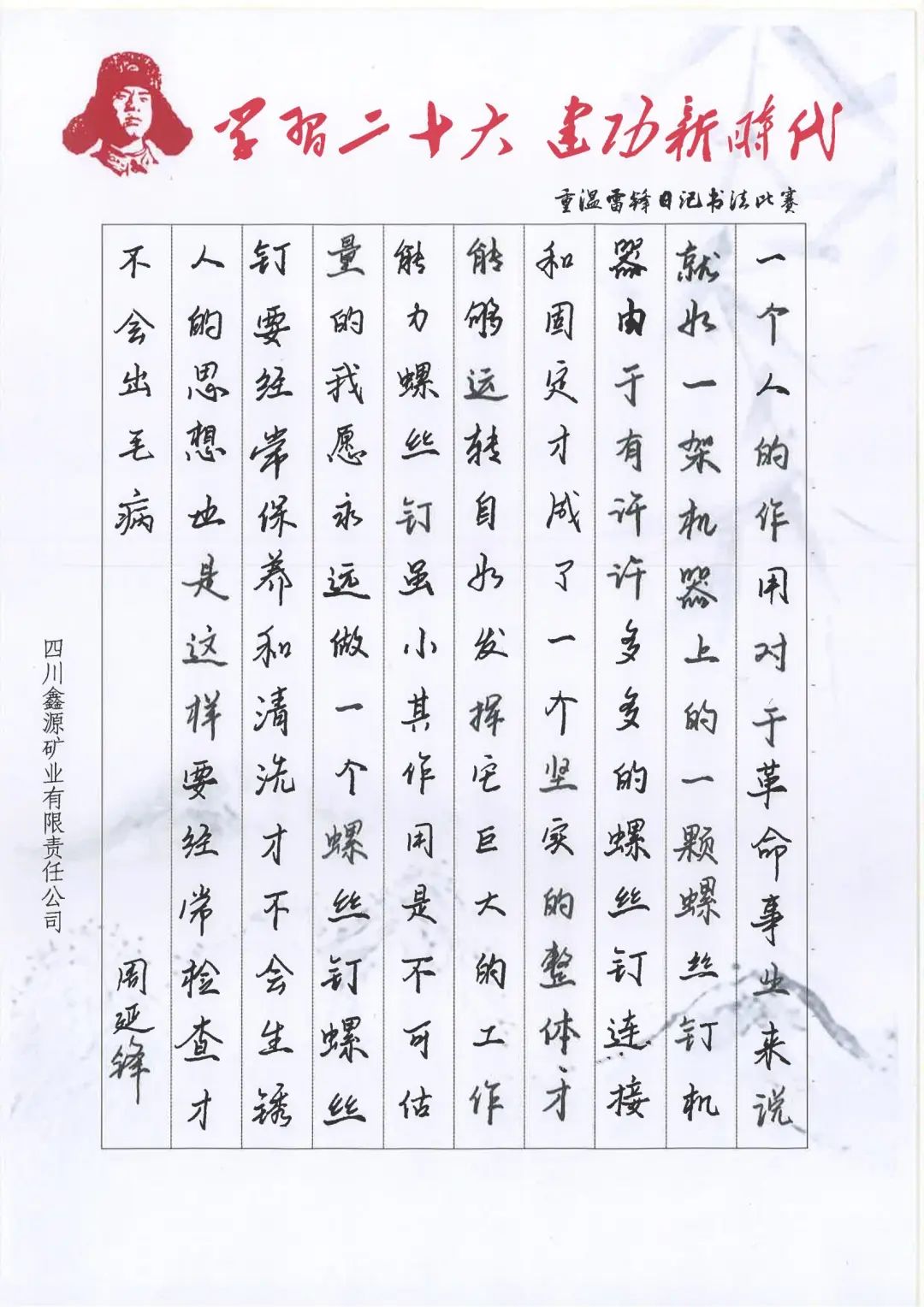 为深入学习贯彻落实党的二十大精神和习近平总书记关于青年工作的重要思想,弘扬“我为人人,人人为我”的雷锋精神,进一步团结和带领公司全体团员青年用浓墨重彩书写“六个现代化新青海”和“全省领先、国内一流、国际知名”企业集团建设的青春篇章。日前,公司团委组织开展“学习二十大·重温雷锋日记”书法比赛活动,公司广大青年干部职工一起抄写雷锋日记、谈雷锋精神、学雷锋事迹,让雷锋事迹扎根心灵,将雷锋精神融入到日常工作生活的点滴中,掀起全员学雷锋,人人学雷锋的热潮。此次比赛共收到作品86副,通过青海省书法协会专家评委评选,最终评选出优秀作品10副,让我们一起看看,都有哪些作品……