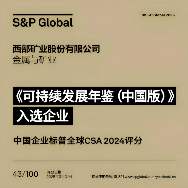 4月15日,标普全球发布《可持续发展年鉴(中国版)2025》,西矿股份凭借在环境、社会及公司治理(ESG)方面的杰出表现成功入选。
