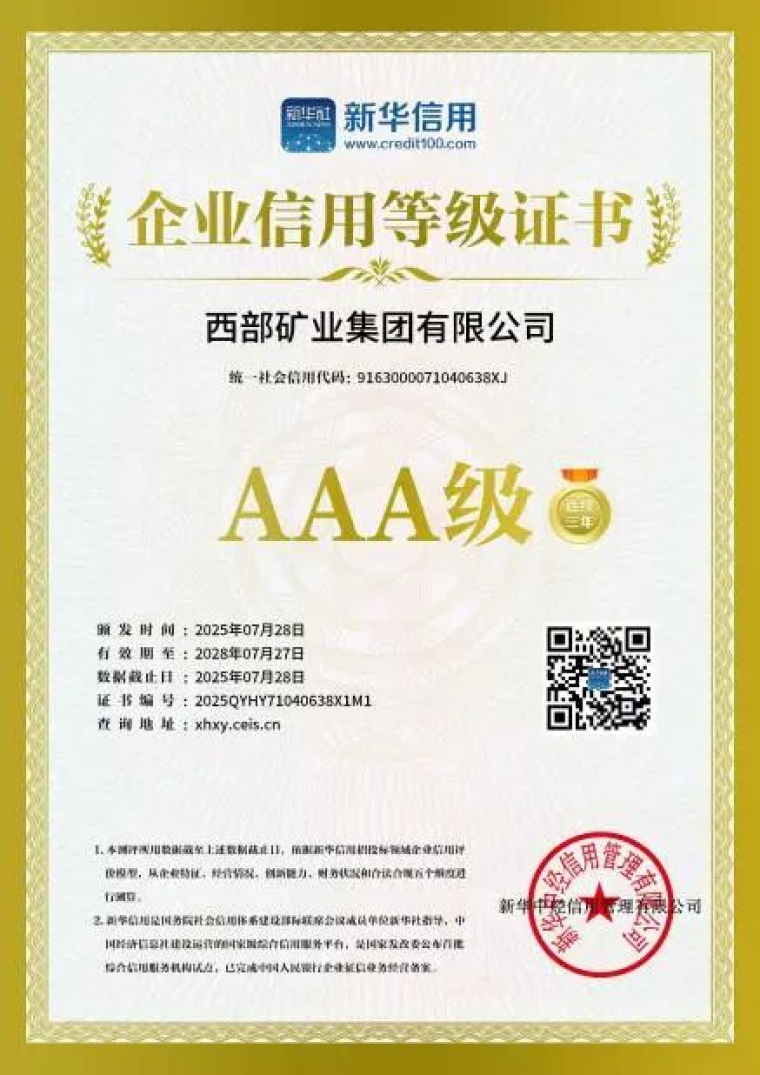8月21日,集团公司获评国家级综合信用服务平台新华社新华信用颁发的“AAA企业信用等级证书、AAA重合同守信用企业证书、AAA资信等级证书”认证,为企业进一步提升品牌影响力和竞争力注入新动能。