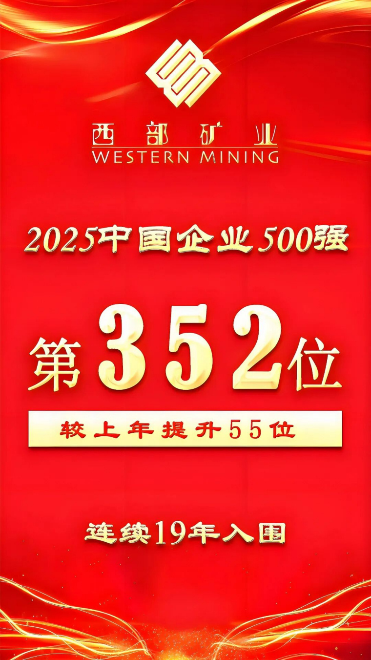 9月15日,西部矿业集团以营业收入687.96亿元入围中国企业500强,排名第352位,较上年提升55位,实现破4见3,这是公司连续第19年入围中国企业500强榜单,也是青海省唯一入围企业。