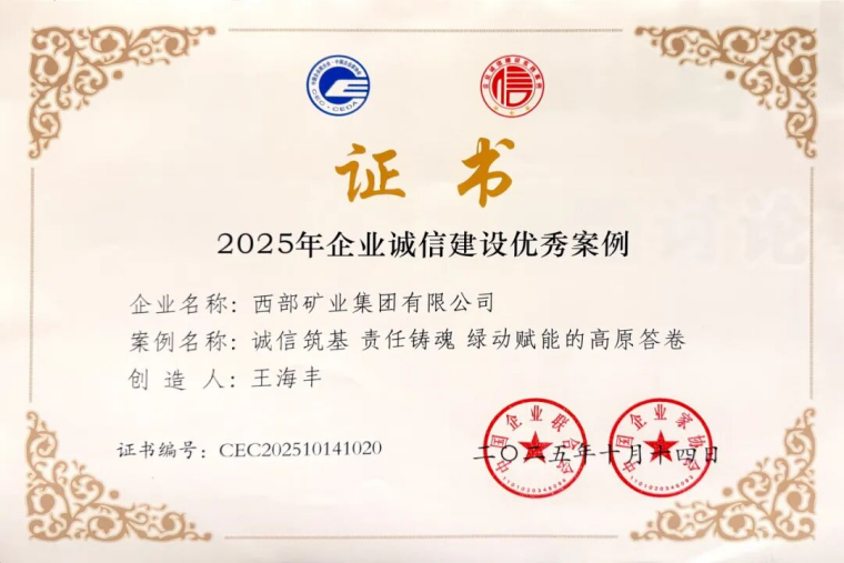 10月30日,在2025年全国企业诚信建设大会上,集团公司荣获企业诚信建设优秀实践案例。