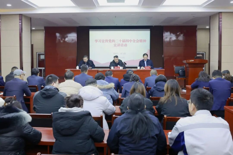 宣传部讯 1月19日,根据省委、省国资委党委统一部署,省国资委党委副书记、主任肖飞虎到公司宣讲党的二十届四中全会精神,动员和激励公司全体党员干部迅速把思想和行动统一到全会精神上来,把智慧和力量凝聚到落实全会确定的目标任务上来,以科技创新助推企业向“新”逐“高”,为“十五五”时期经济社会高质量发展蓄势赋能。省国资委一级巡视员李顺福参加,集团公司党委副书记、工会主席李威主持。